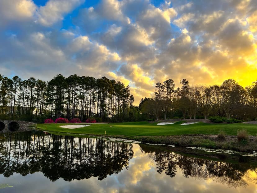 Details: A rarity in Myrtle Beach, this hole has a downhill tee shot! Rae’s Creek (site of Hogan’s Bridge, named for the late, great Ben Hogan) runs in front of the green, demanding a high, precise short-iron that must land softly or spin back into the creek.